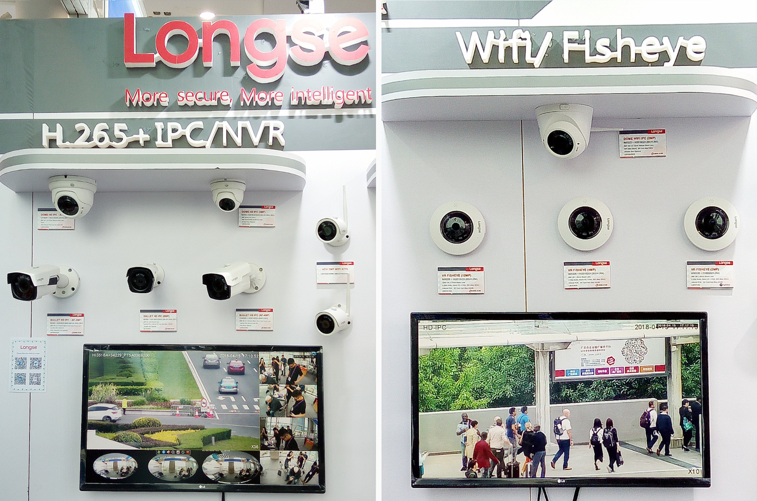 展品展臺的H.265+網(wǎng)絡(luò)高清攝像機/錄像機與Wifi套裝產(chǎn)品系列,以高清分辨率、即插即用、360度廣角拍攝等特點,通過攝像機在展館外和交通道路的現(xiàn)場實拍畫面,充分展示了畫面中的每一處細(xì)節(jié),使得國內(nèi)外買家能近距離感受真實畫面的沖擊感,享受整個流暢過程。
